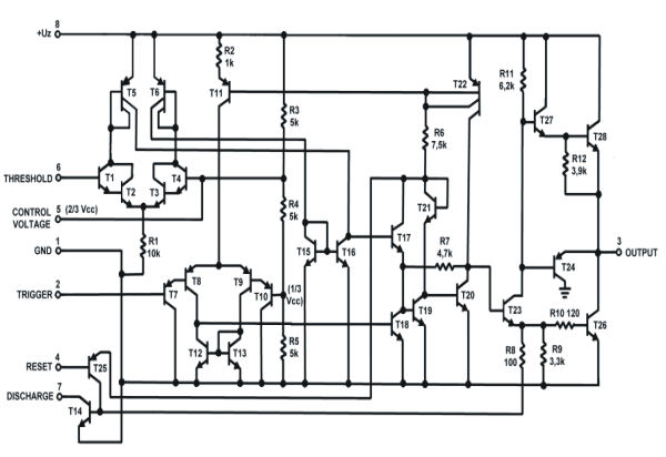 Schemat wewnętrzny timera 555