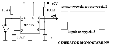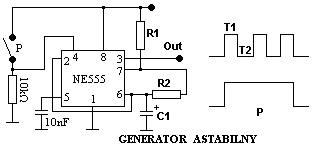Timer NE555 może pracować w jednym z dwóch podstawowych układów pracy: jako multiwibrator monostabilny i astabilny.